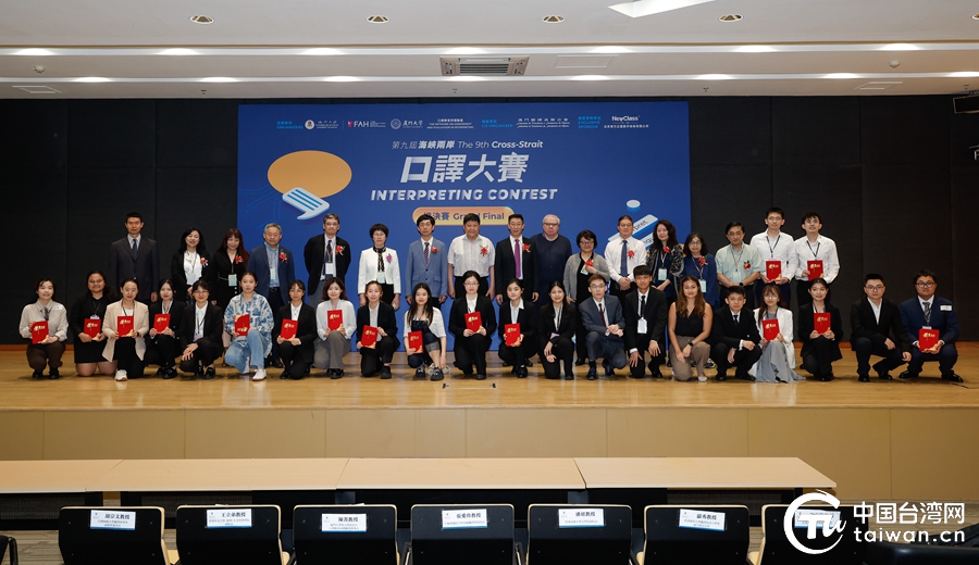 圖為第九屆海峽兩岸口譯大賽參賽學生與指導老師等合影。(中國臺灣網(wǎng) 發(fā))